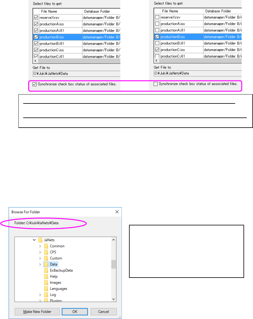 When the check box “Synchronize check box status of associated files” is checked: