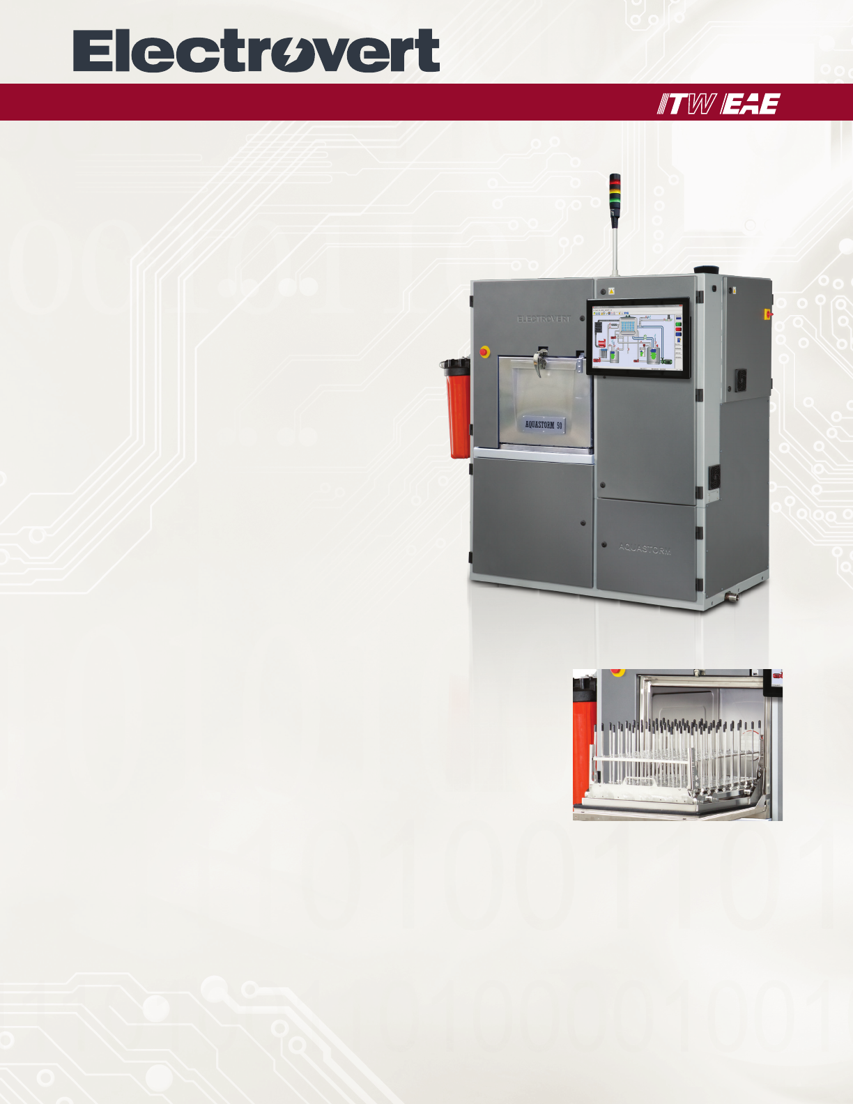 typical batch cleaners are modified versions of residential dishwashers, the Aquastorm 50 utilizes field-