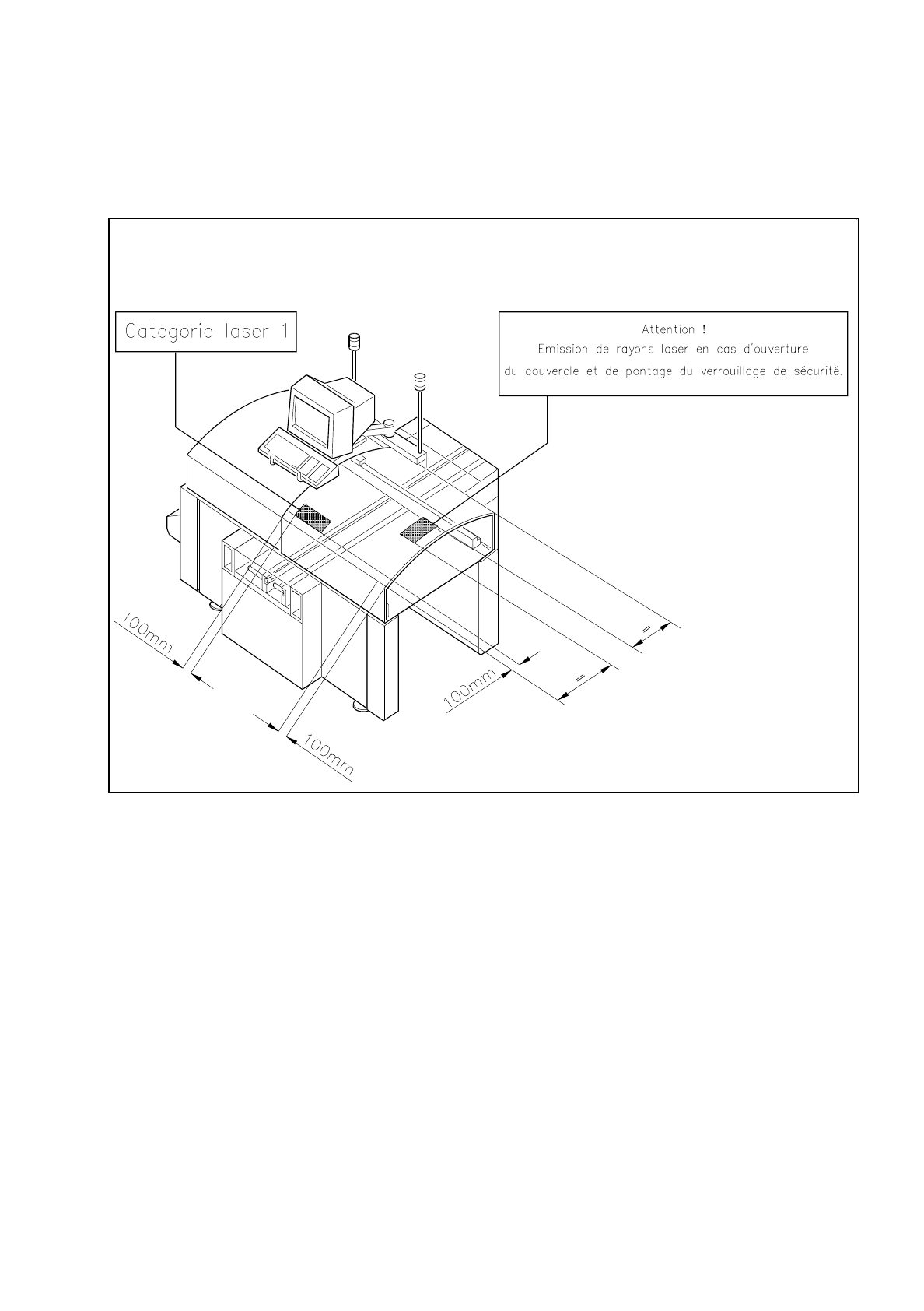 L'illustration suivante montre la position des consignes de sécurité pour l'exploitation du module laser de