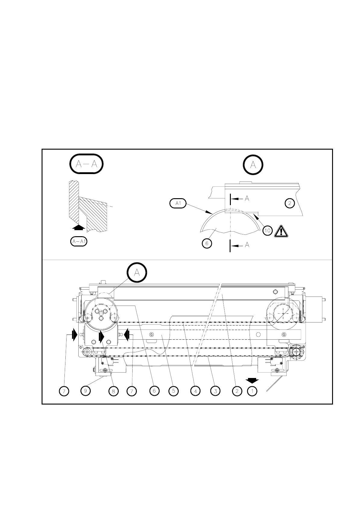 Fig. 9.3.4 Entretenir la découpeuse de bandes vides (conduite directrice de bandes vides démontée)