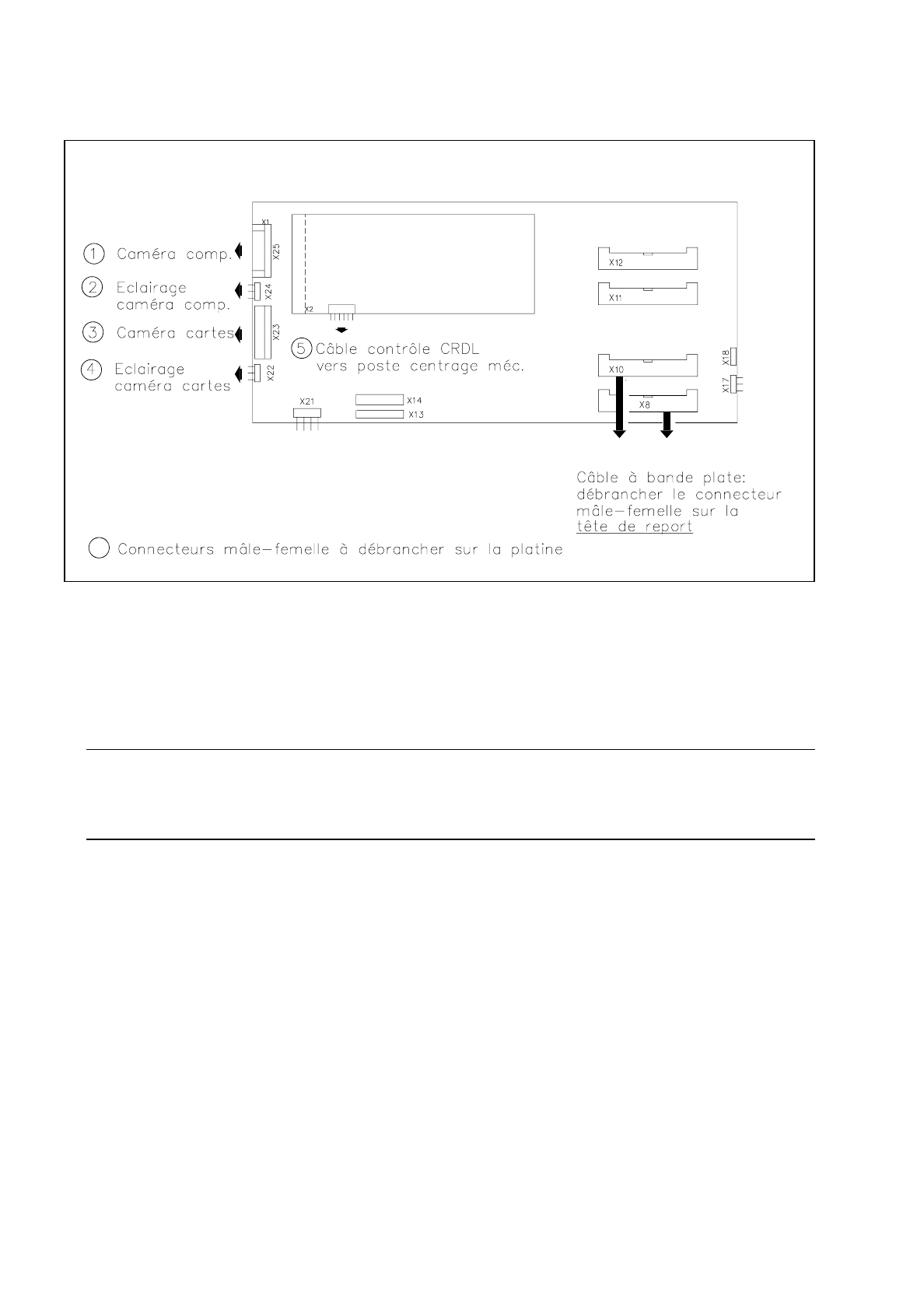 Fig. 9.5.3 Platine de transfert petit axe et platine de la tête de contrôle CRDL: débrancher connecteurs mâle-femelle
