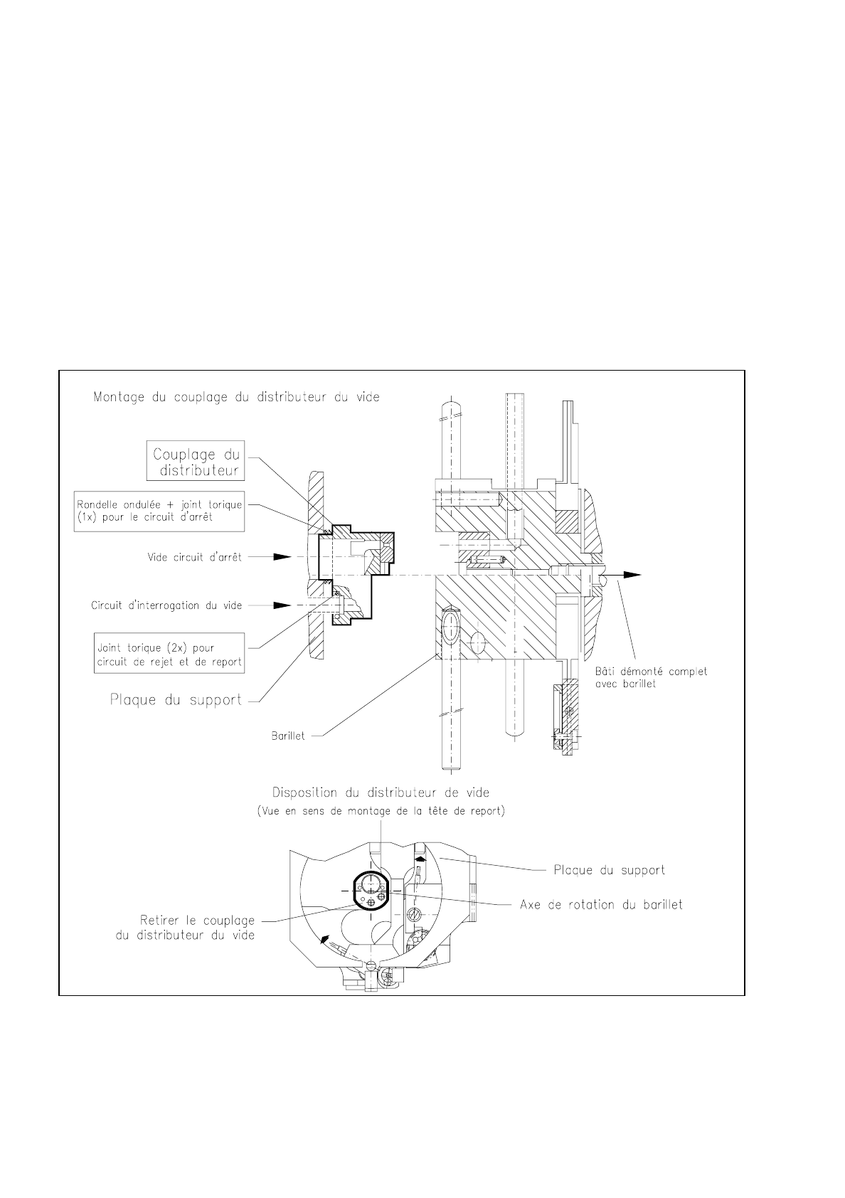 Le couplage du distributeur du vide est placé au point de rotation du barillet sur la plaque du porteur et n'est