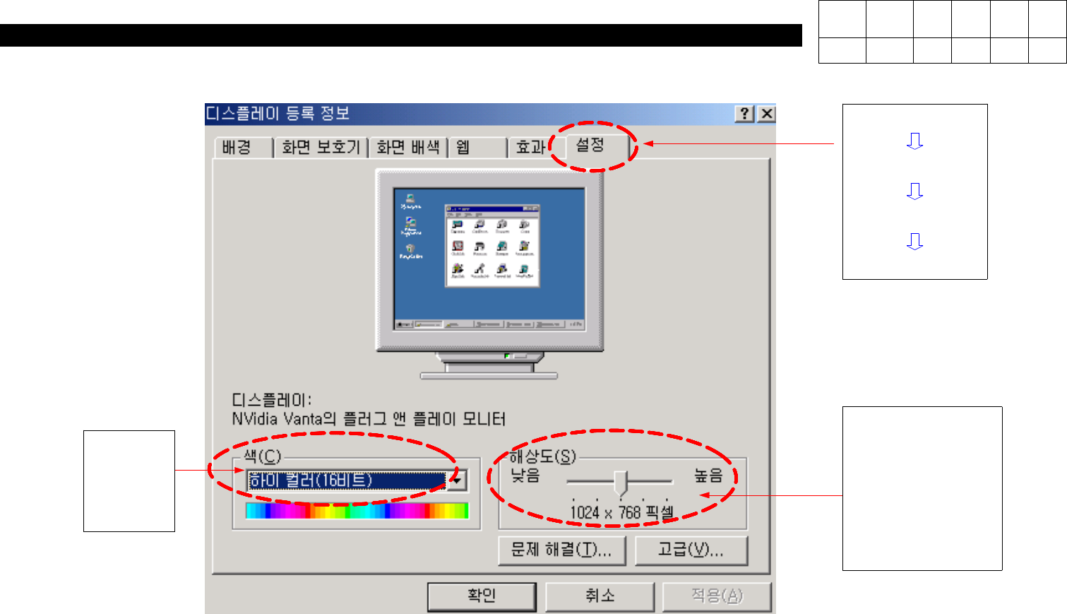 - Color : High Color(16 Bit) - Resolution : CP-20/40/50 ==> 800 * 600 pixel