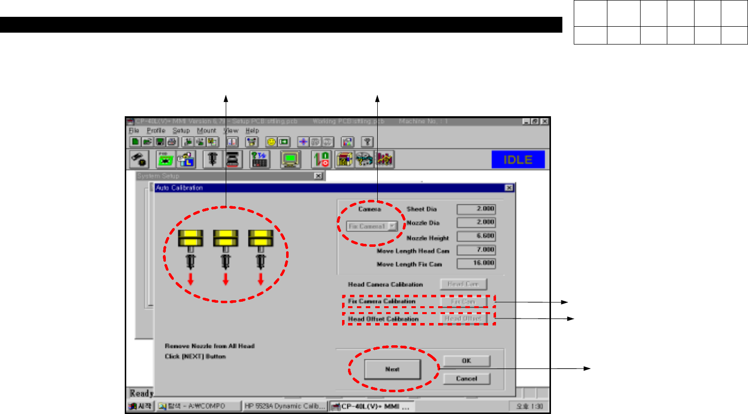 8. Fix Camera (CP-40) After Setting as the above, Select OK to Finish. In System Setup W indow, Selecting => Calibration makes Auto Calibr ation Win dow Displ ayed In Auto Calibration Window, Set Camera to Fix Camera1…