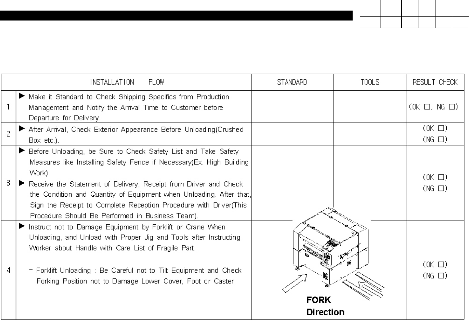 1) Business : Apply the Related Documents to the Installation Team 3 Days before Installation, Request the Forwarding