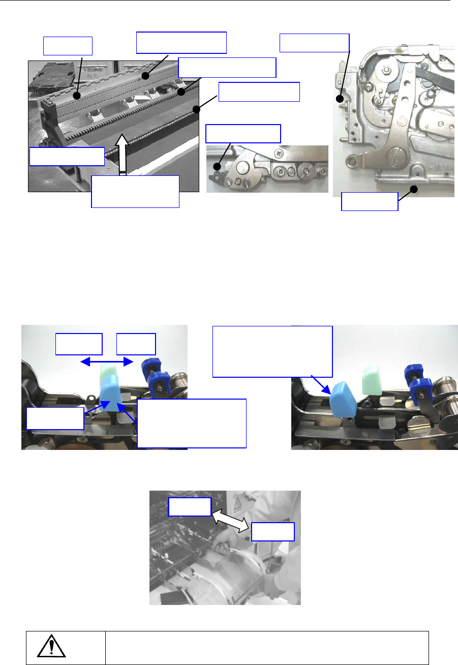 6) 请按压分离杆,固定装置。请进行以下的确认,确认供料器是否确实地固定到贴片机上。