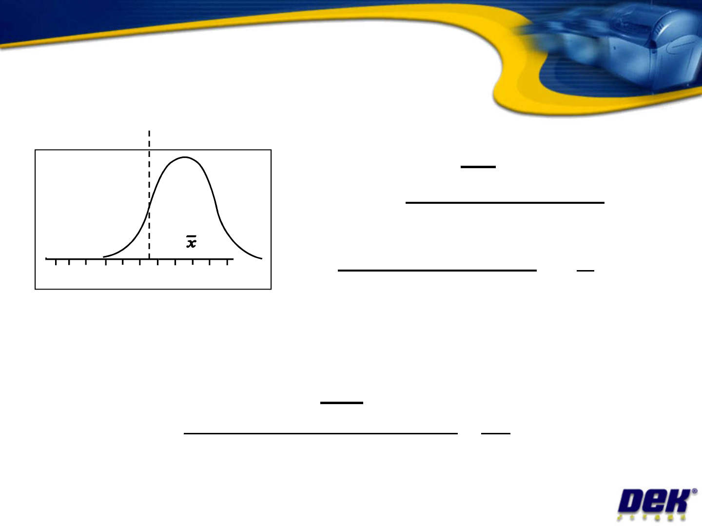 Your turn…! An archer fi res arrows at a targ et. He perf orms with a stand ard dev iation of 2 cm. The s ize of the targe t (tolerance ) is +/- 25 cm. Calculat e his Sigma, Cp and Cpk Issue 2: July 2007 Sigma = Cp = Cpk…