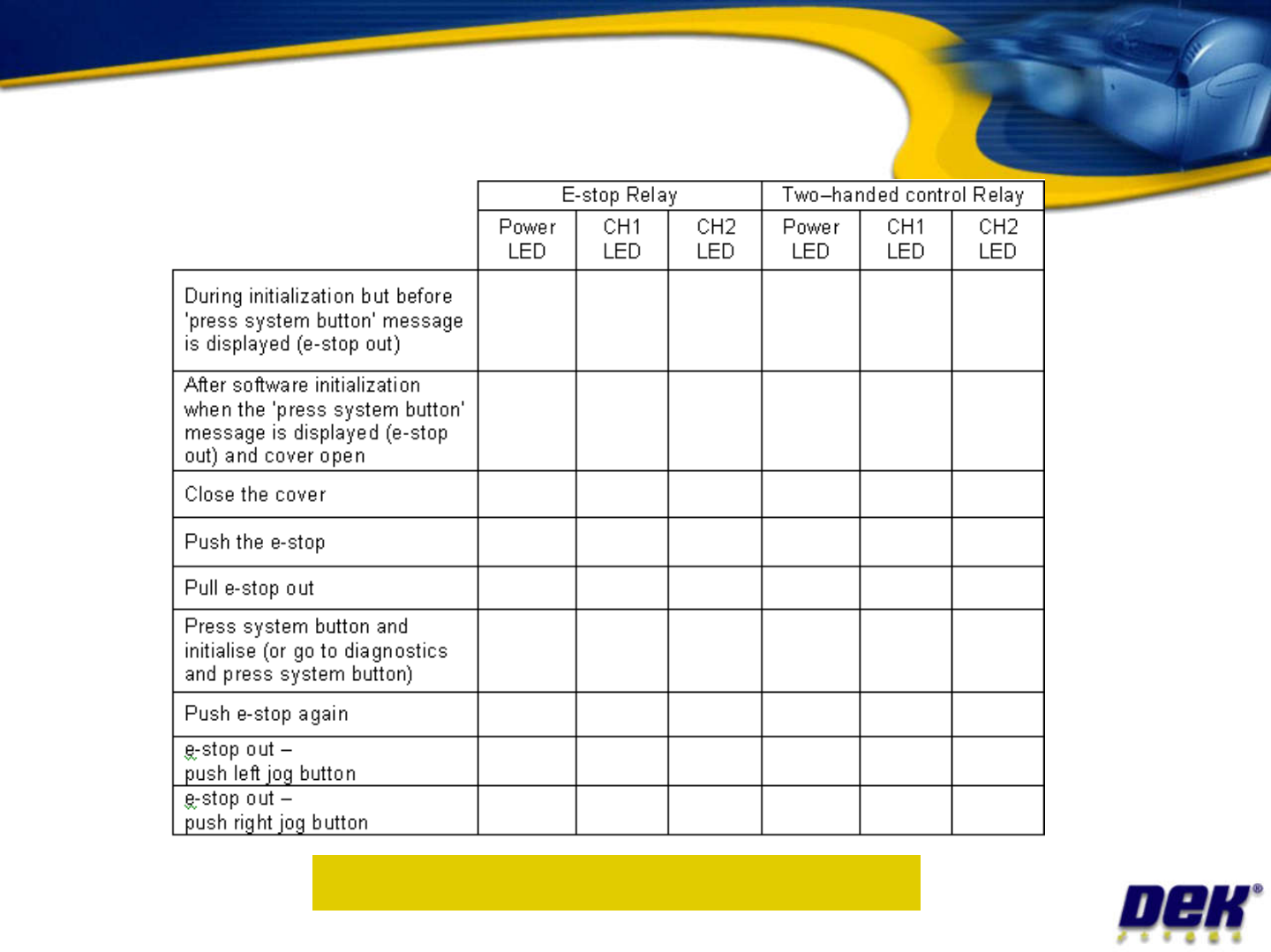 E-stop CCT LED indications