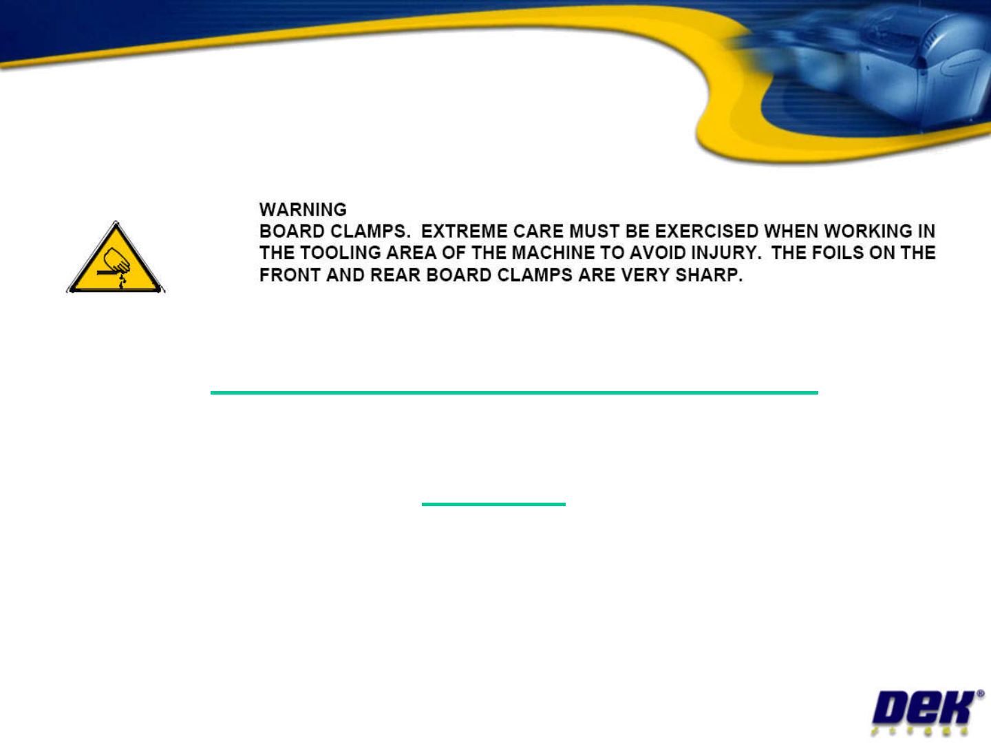 MOVING MACHINE PARTS MAY CAUS E INJURY DURING THIS COUR SE WE WILL OPERATE W ARNING! Classroom Safety Issue 2: July 2007 DURING THIS COUR SE WE WILL OPERATE THE MACH INE WITH CERTAIN COVERS REMOVED ALWAYS ENSURE SYSTEM P…