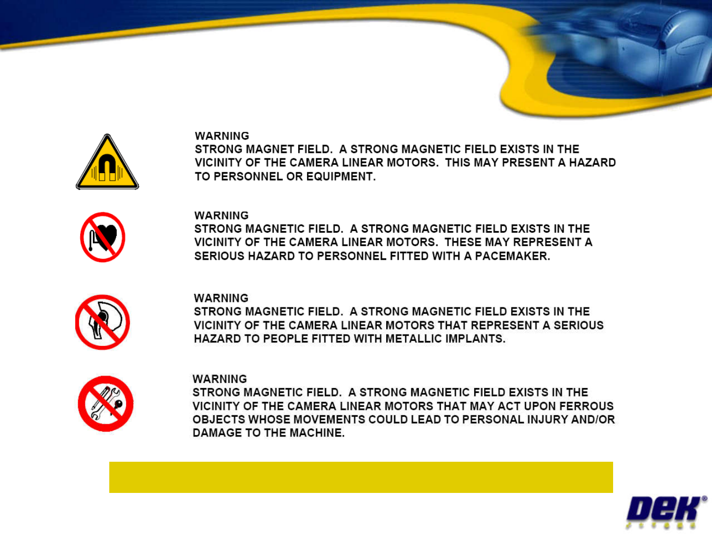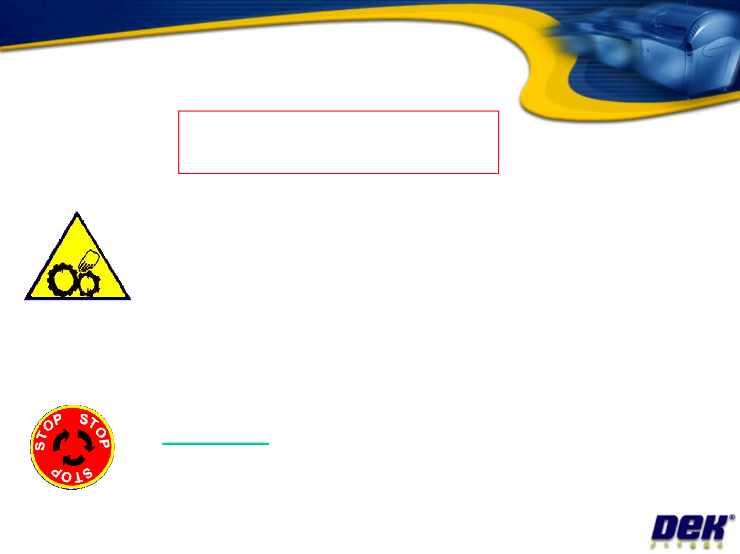 Safety for Linear motors Issue 2: July 2007 Objective 1: Locate the hazardous areas of the machine