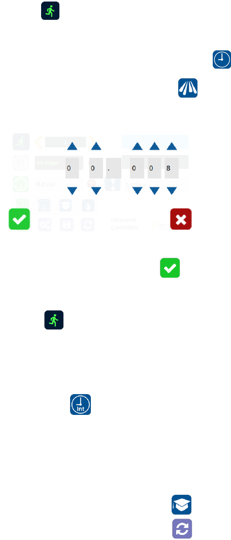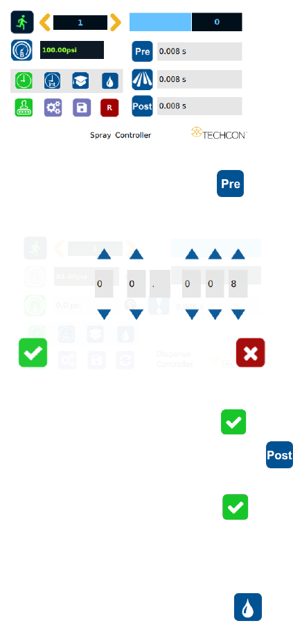 2. Touch Up and Down arrows to set the desired pre-spray time