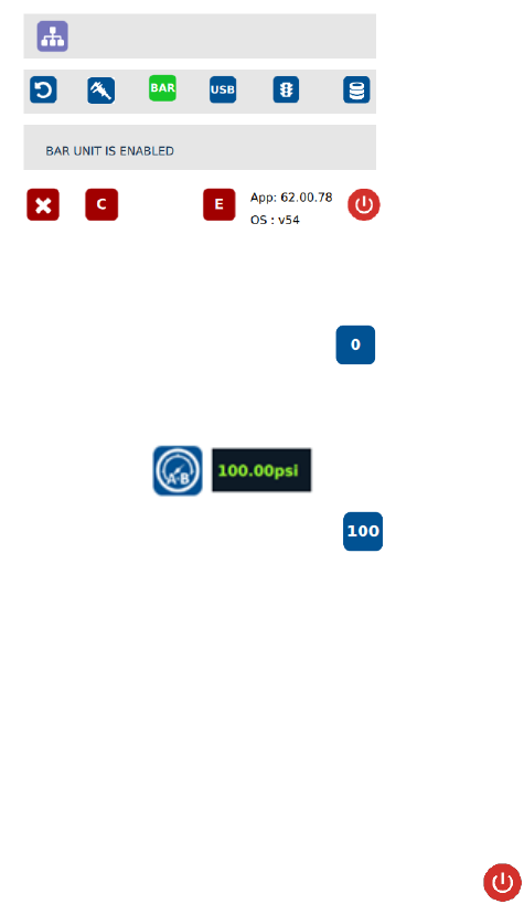 Note: The default pressure unit is PSI. To change pressure unit to BAR,