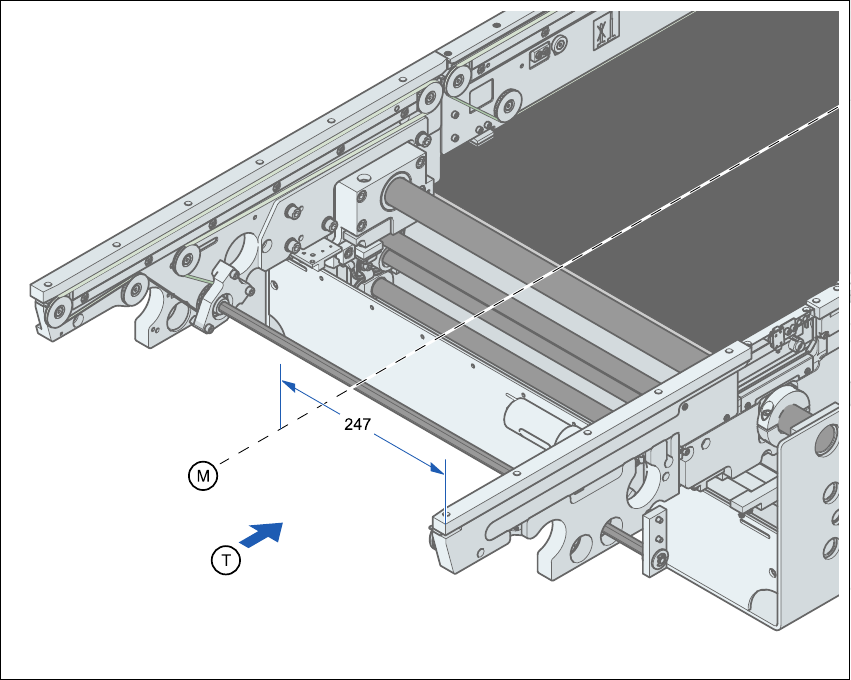 4.2.2 Distância entre o lado direito do transporte de PCI e o centro da máquina