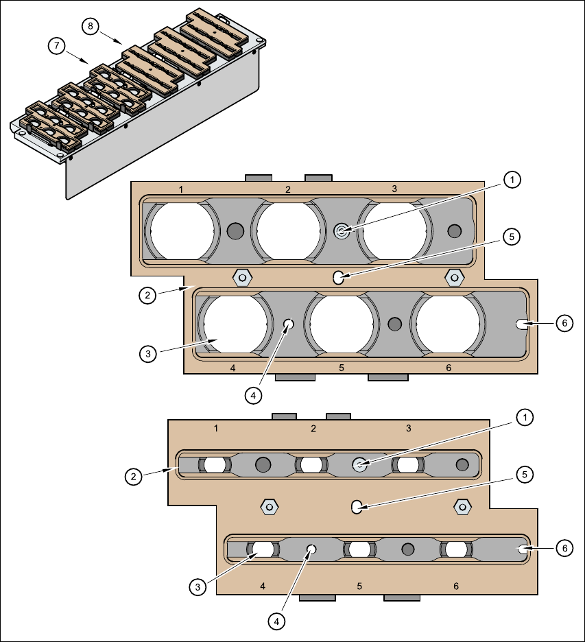 6 garagens de bocais nos carregadores também estão.numeradas. (veja a Fig. 7.1 - 11