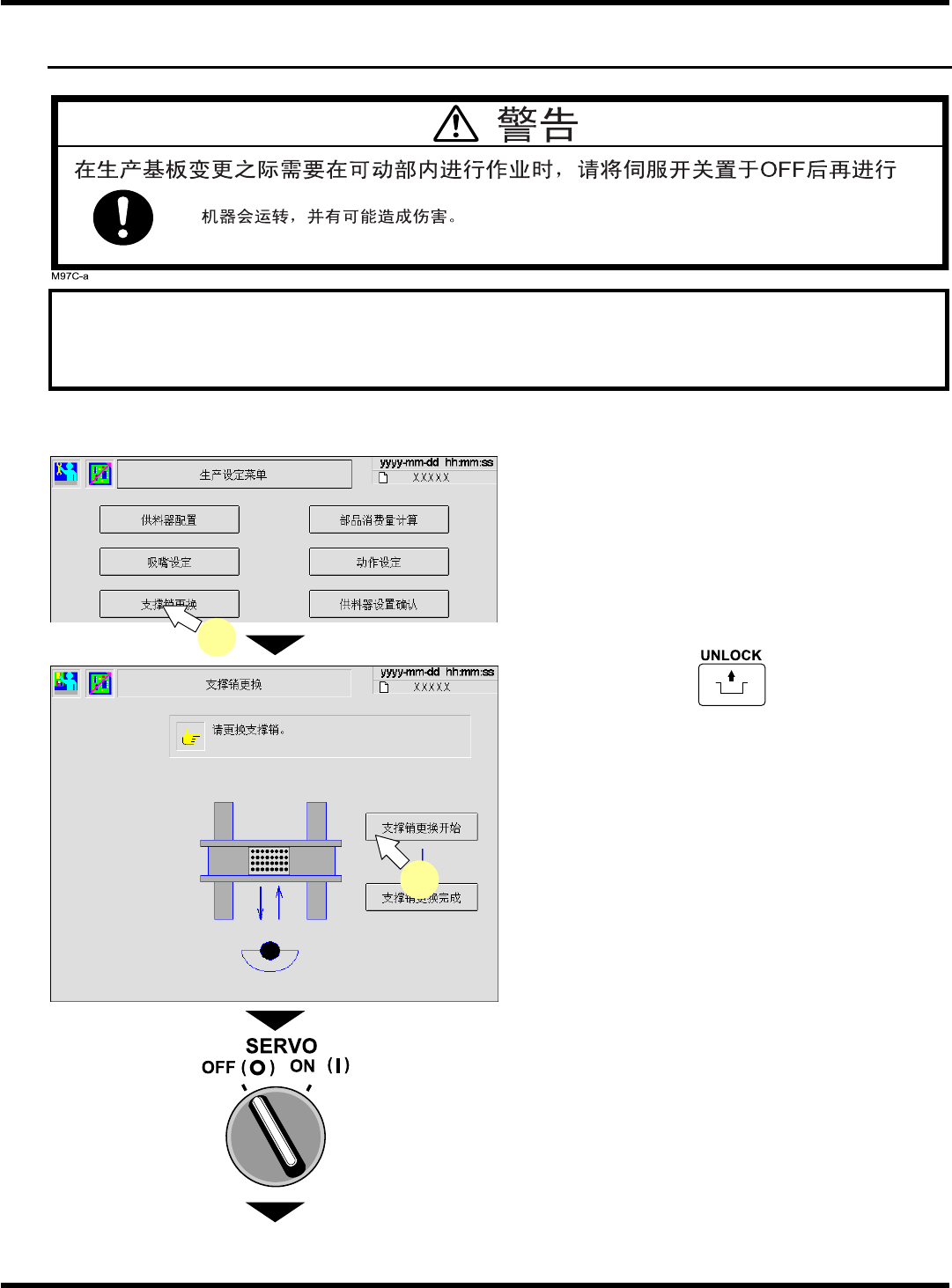 时,在进行导轨宽度调整前请卸下基板支撑块。