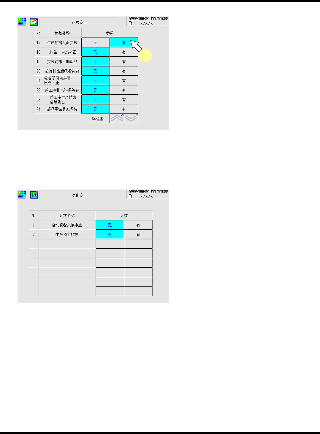 所说明的动作设定画面,将参数名之