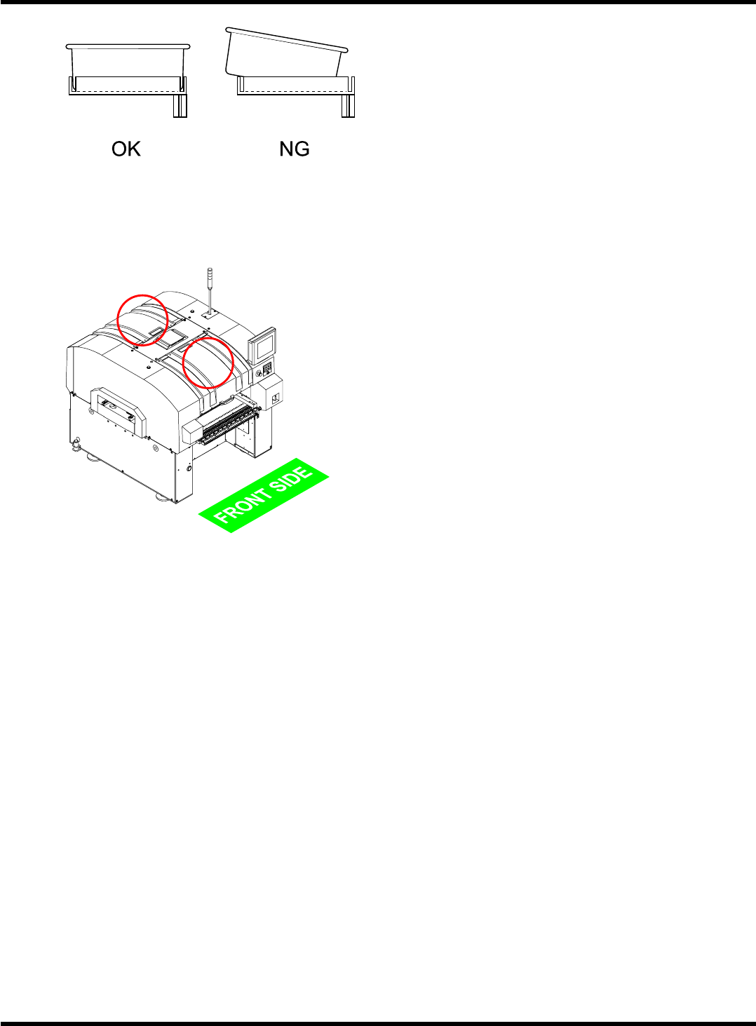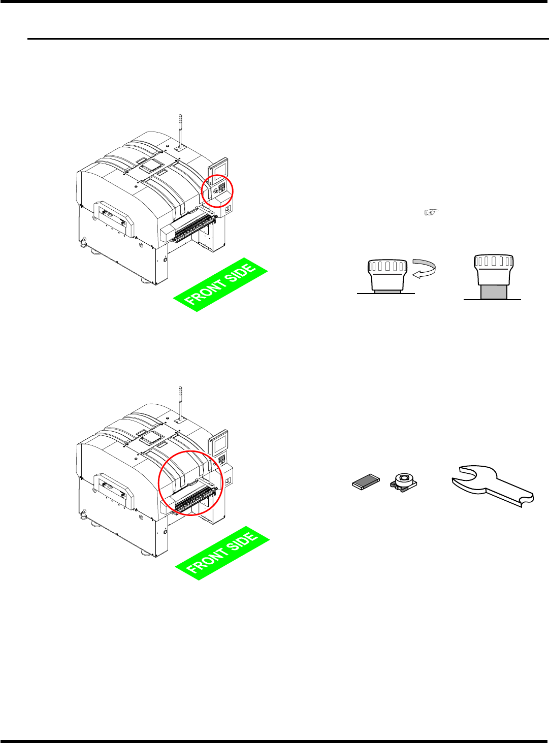 CM101-D 操作手册 2.2 生产前 Page 2-3 2.2 生产前 2.2.1 生产开始前的检查 开始运转前,请确认如 下几点。 1. 紧急停止按钮状态的确认 紧急停止按钮是否已解 除 ? ( 前面、后面 : 2 处 ) 是 → 进行第 2 步 否 → 尚未解除时, 将紧急停止按钮向 箭头所示的 方向转就会解除。 ( 安全注意事项 ) 紧急停止状态 解除状态 2. 机器内异物等的确认 传送带与供料器工作台 上是否有异物 ? 有 …
