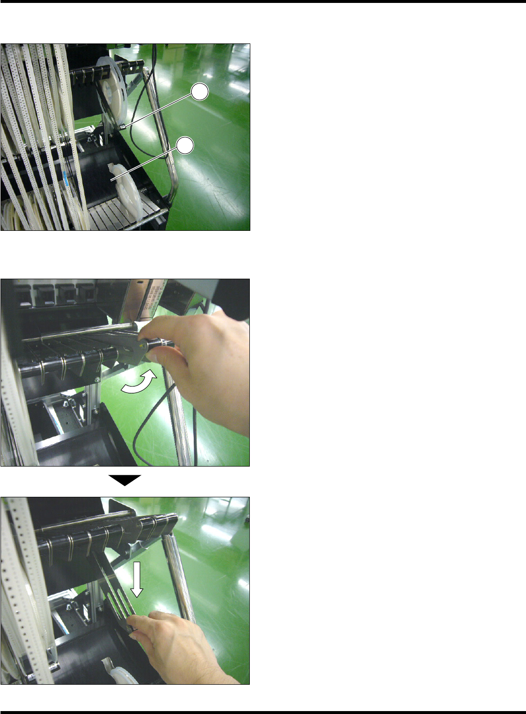 CM101-D 操作手册 3.1 智能供料器的设置 Page 3-5 2. 下层小卷盘导轨 的准备 1. 将下层小卷盘导轨 立起至碰上止动器为 止。 FCCT-0 0 4P EJM5B- C-OMC03-A01- 00