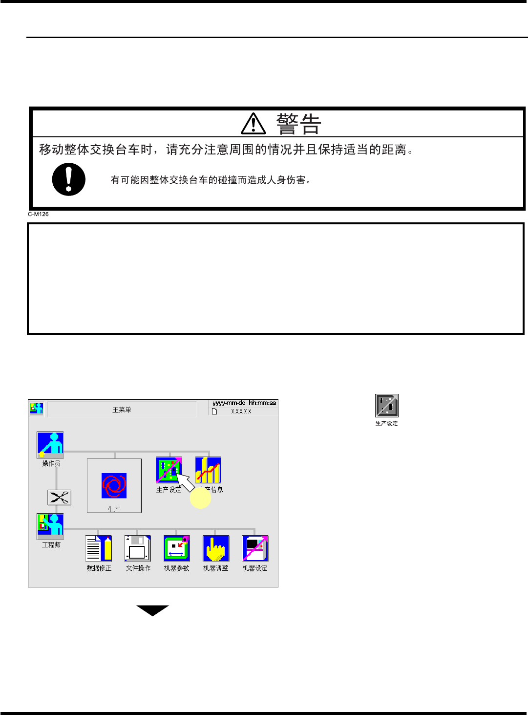 生产设定菜单画面将被显示。