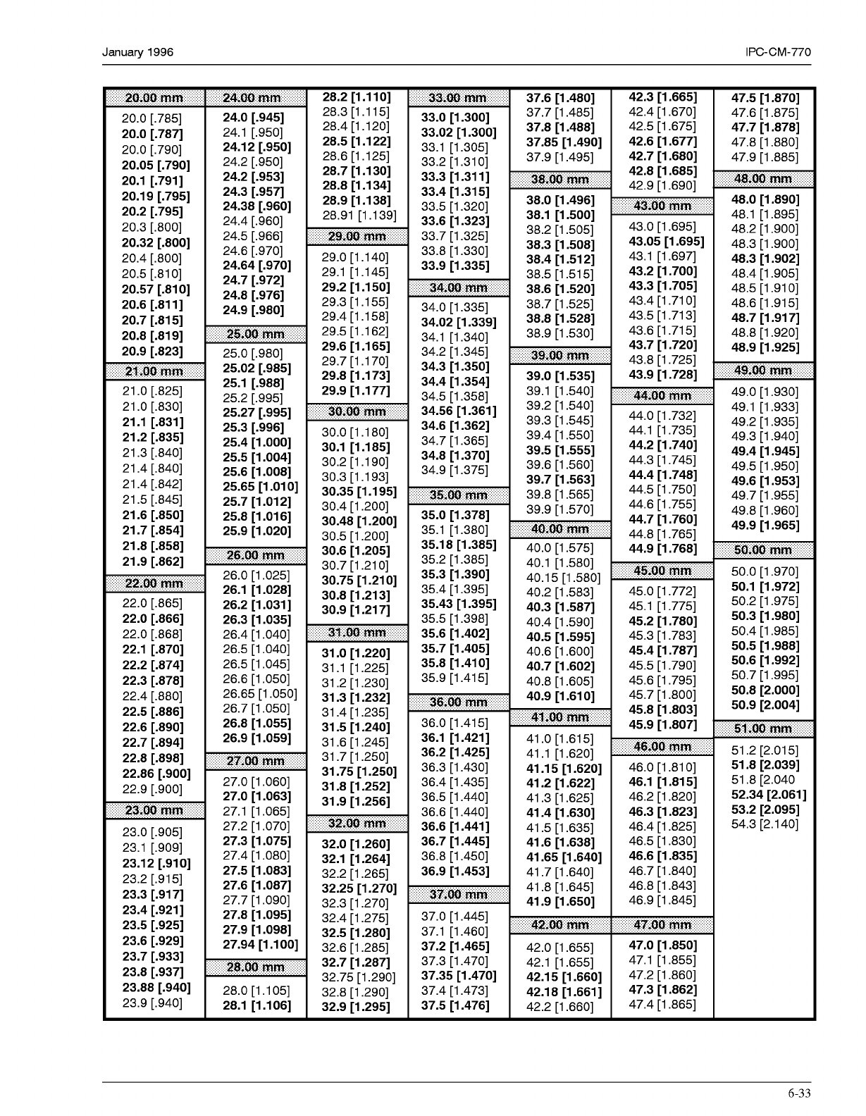 Januaw 1996 IPC-CM-770 20.0 [.785] 20.0 [.787] 20.0 [.790] 20.05 [.790] 20.1 [.791] 20.1 9 [.795] 20.2 [.795] 20.3 [.800] 20.32 [.800] 20.4 [.800] 20.5 [.81 O] 20.57 [.81 O] 20.6 [.811] 20.7 [.815] 20.8 [.819] 20.9 [.823…