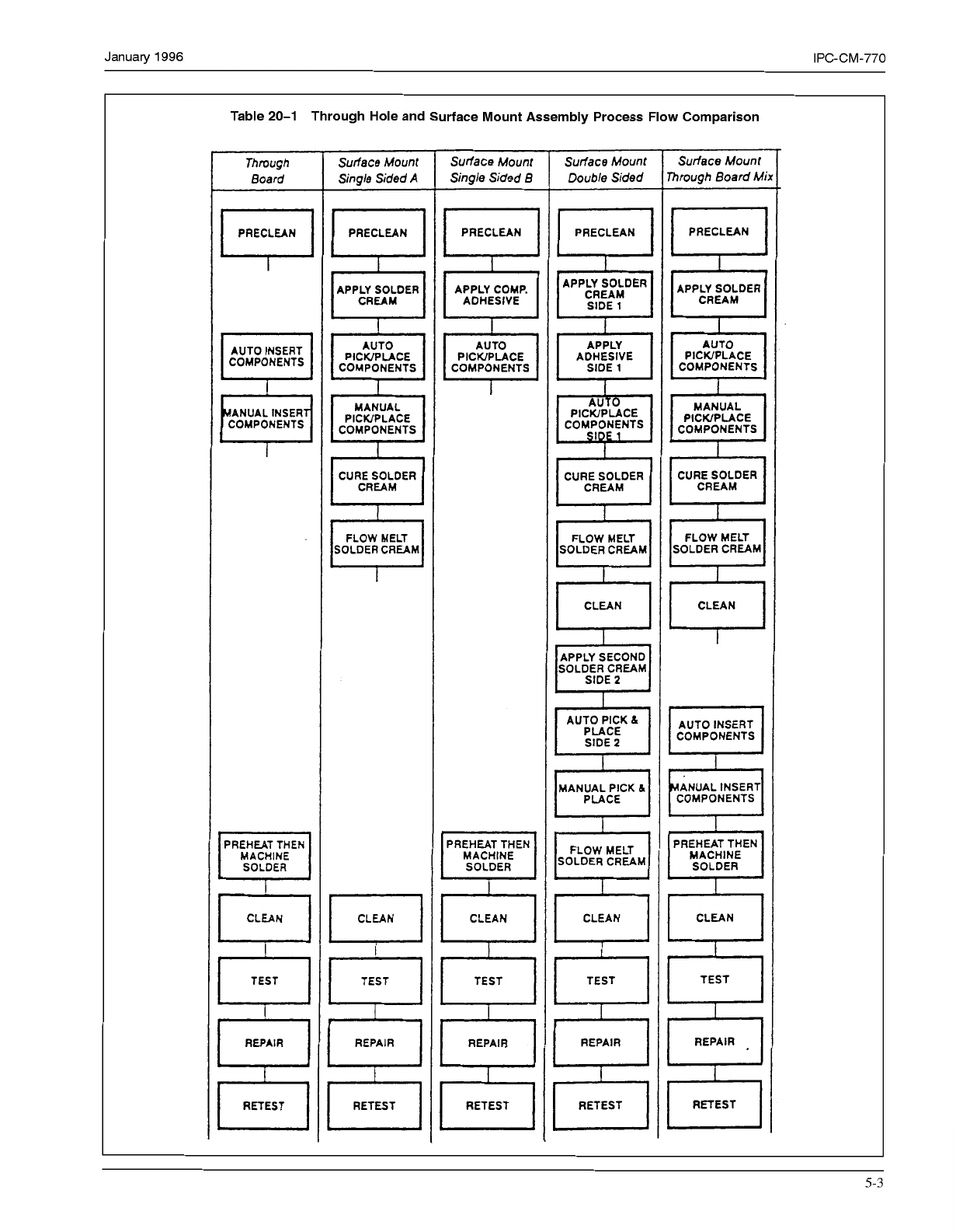 Table 20-1 Through Hole and Surface Mount Assembly Process