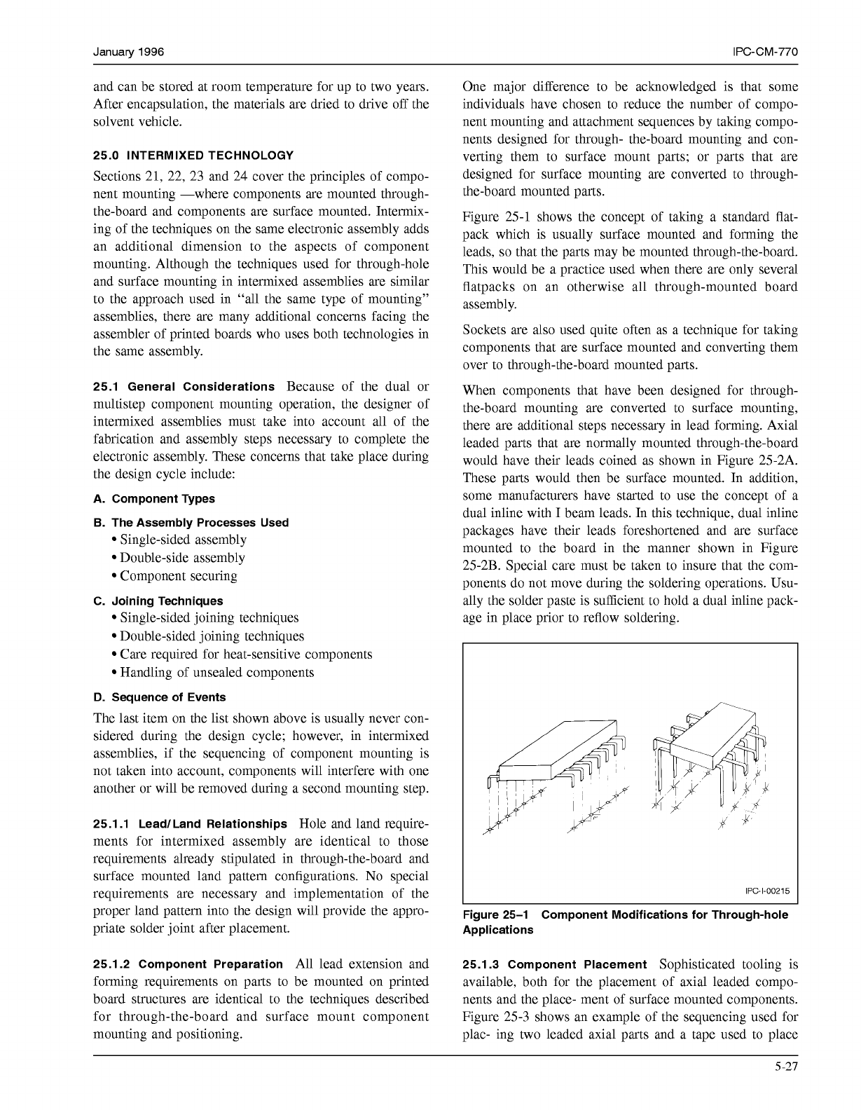 January 1996 IPC-CM-770 and can be stored at room temperature for up to two years. After encapsulation, the materials are dried to drive off the solvent vehicle. 25.0 INTERMIXED TECHNOLOGY Sections 21, 22, 23 and 24 cove…