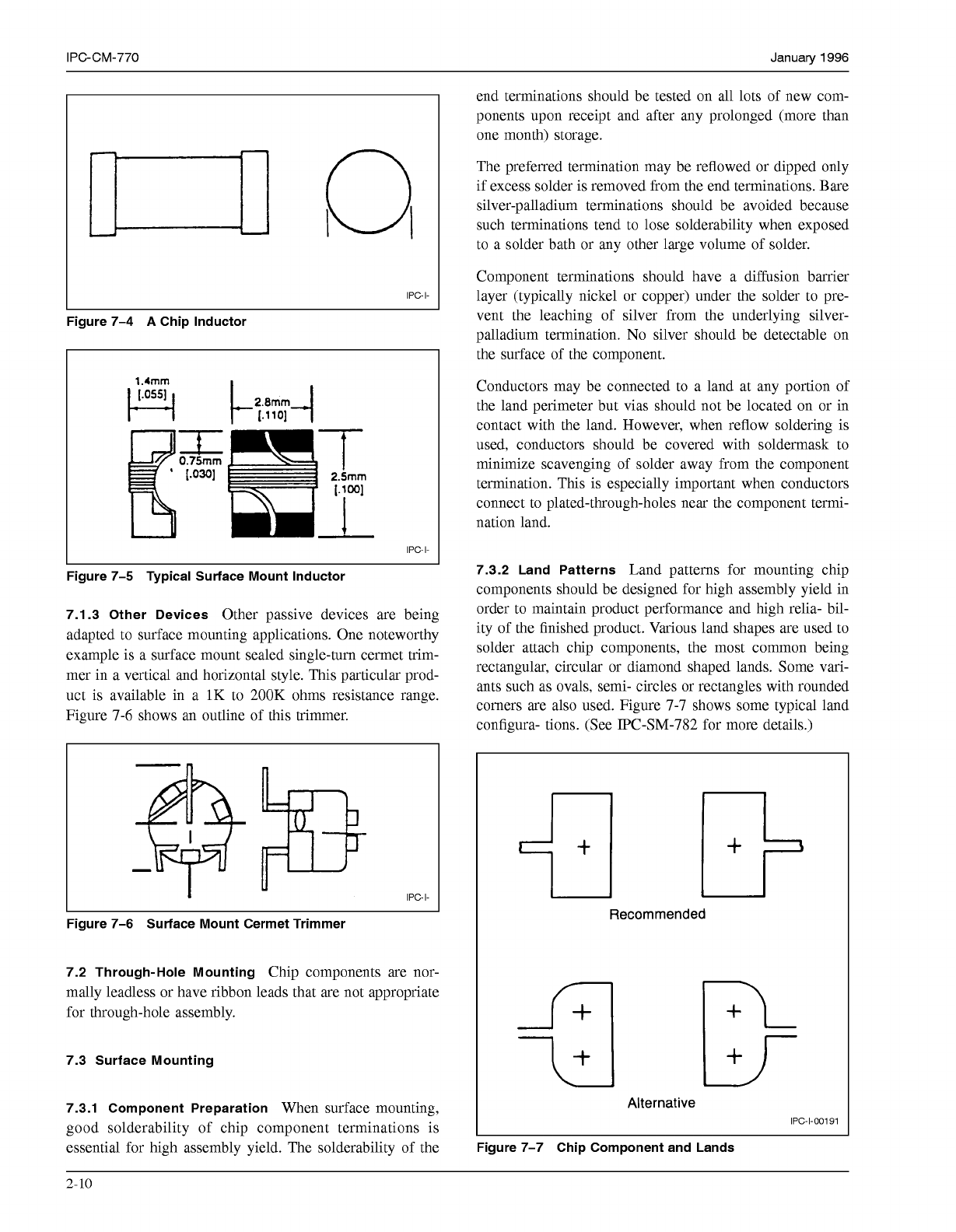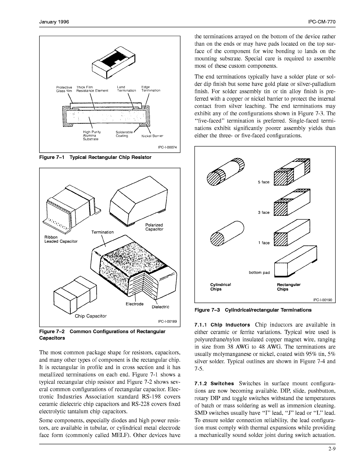 January 1996 IPC-CM-770 Pratectlve Thlck Fllm Glass film Reslstance Element TerminatIan Termlnatlon Land Edge \ Alumna Hlgh Purity Solderable Substrate Coatlng Nlckel Barrler IPC-1-00074 Figure 7-1 Typical Rectangular Ch…