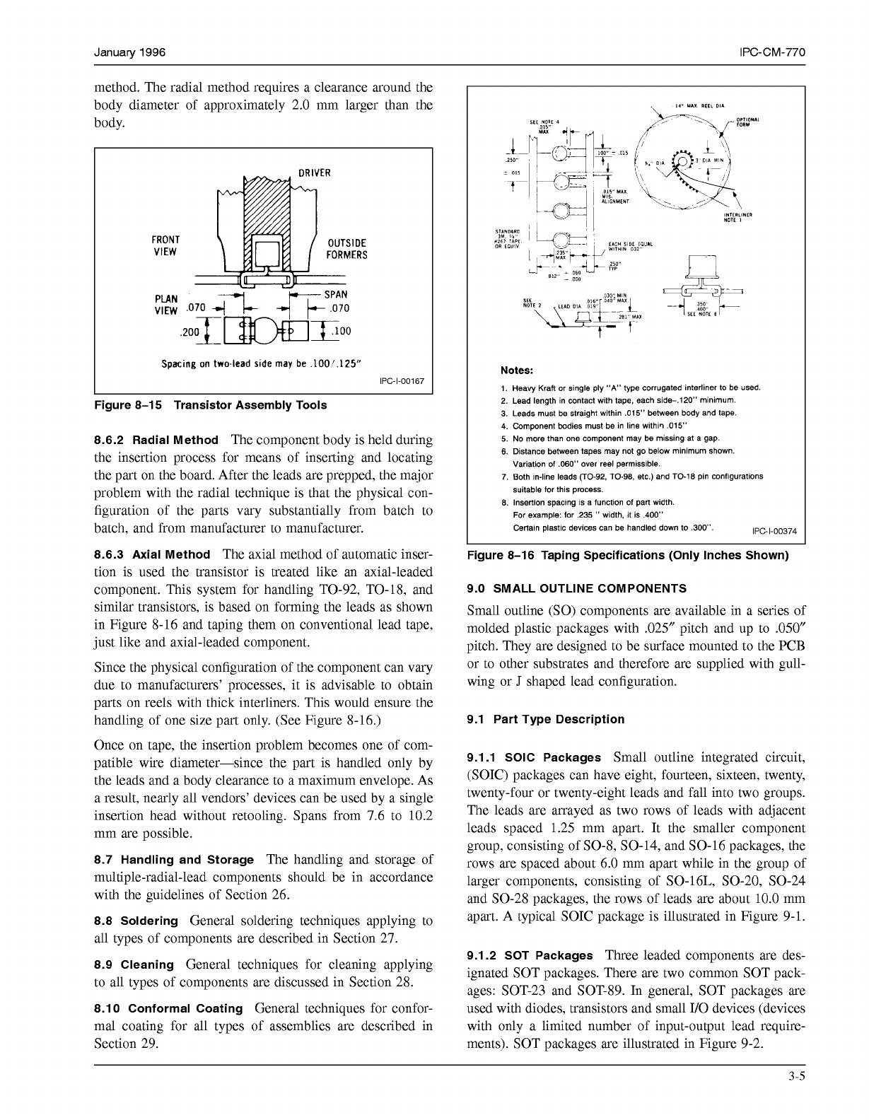 January 1996 IPC-CM-770 method. The radial method requires a clearance around the body diameter of approximately 2.0 mm larger than the body. FRONT VIEW PLAN VIEW .O70 4 4 .O70 Spacing on two-lead side may be .100/.125&q…