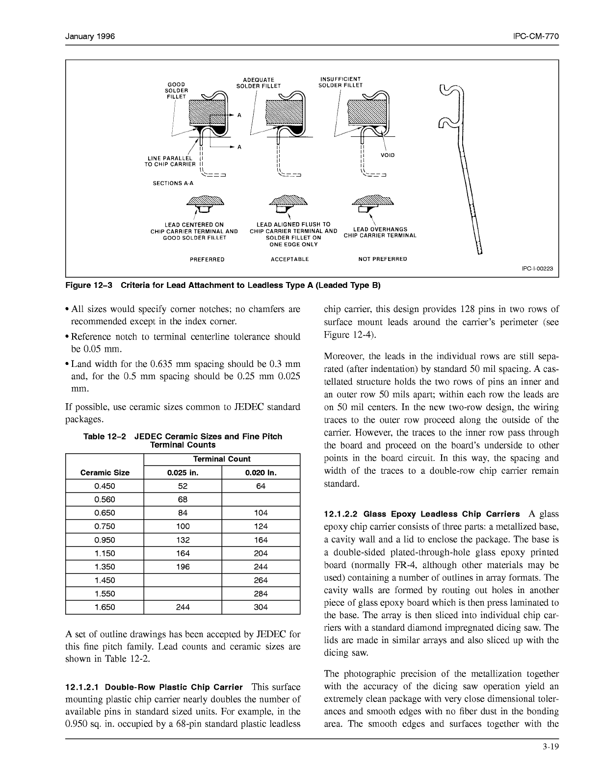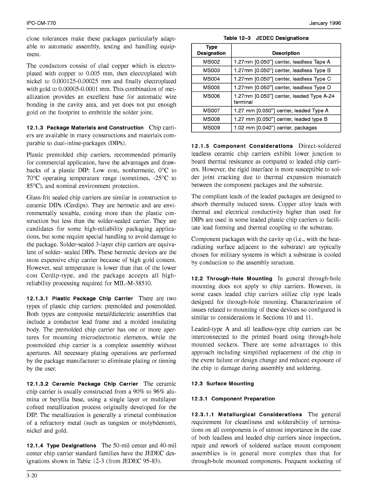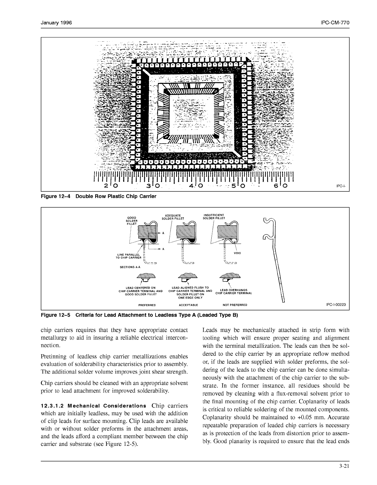 IPC-CM-770 Januaty 1996 close tolerances make these packages particularly adapt- able to automatic assembly, testing and handling equip- ment. The conductors consist of clad copper which is electro- plated with copper to…