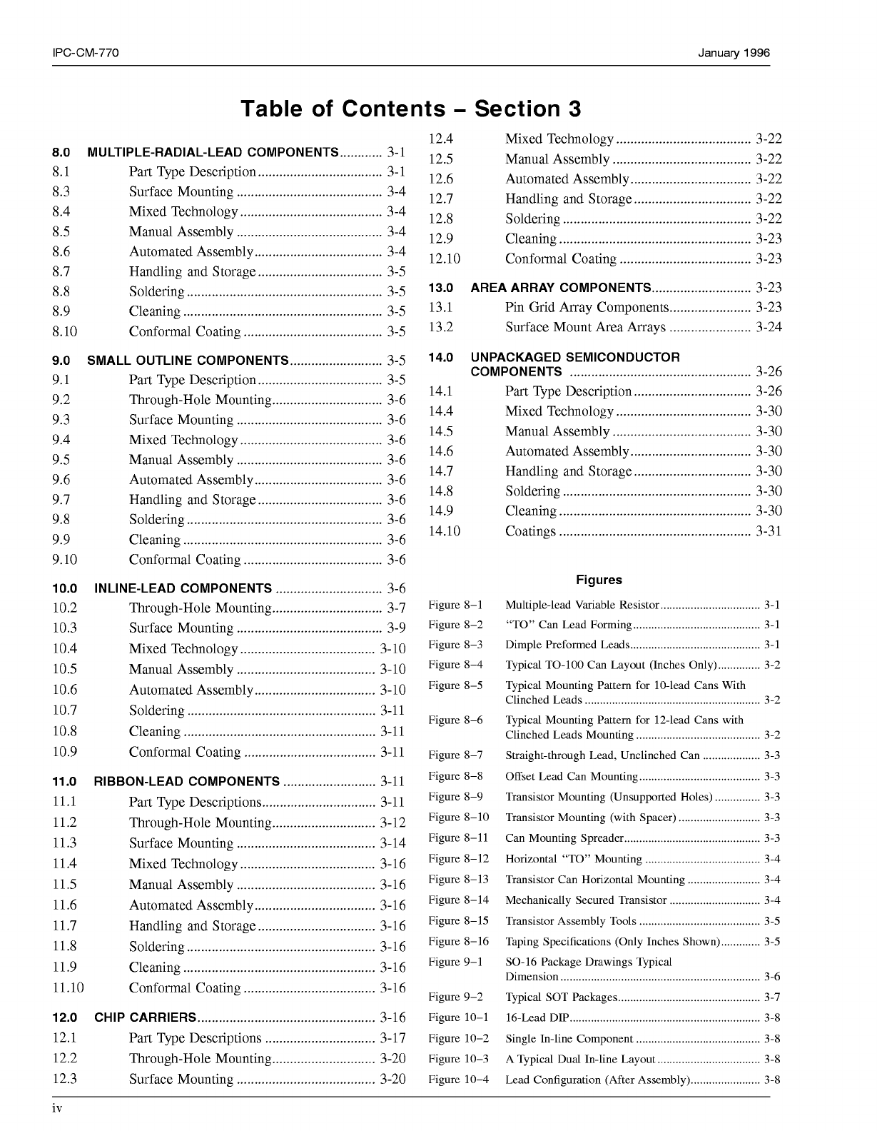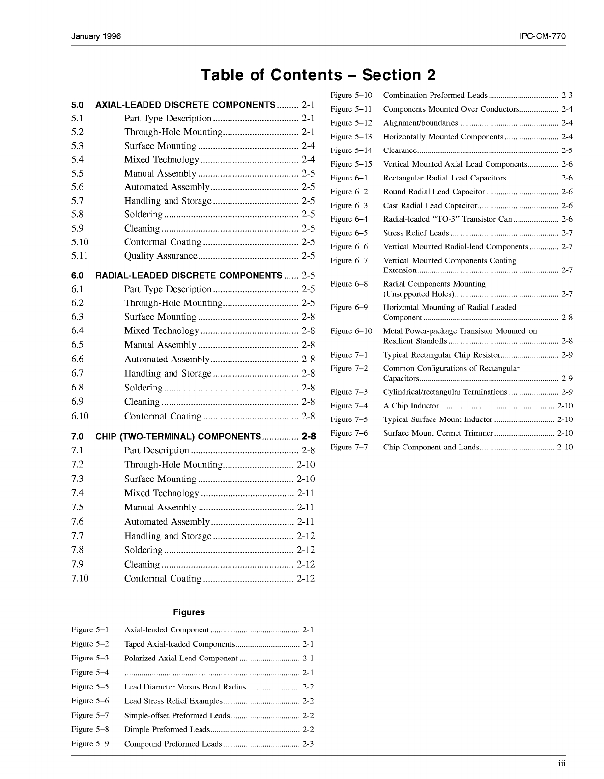Januaw 1996 IPC-CM-770 Table of Contents . Section 2 Figure 5- 1 O 5.0 AXIAL-LEADED DISCRETE COMPONENTS ......... 2-1 FiPure 5-11 5.1 5.2 5.3 5.4 5.5 5.6 5.7 5.8 5.9 5.10 5.11 u Part Type Description ....................…