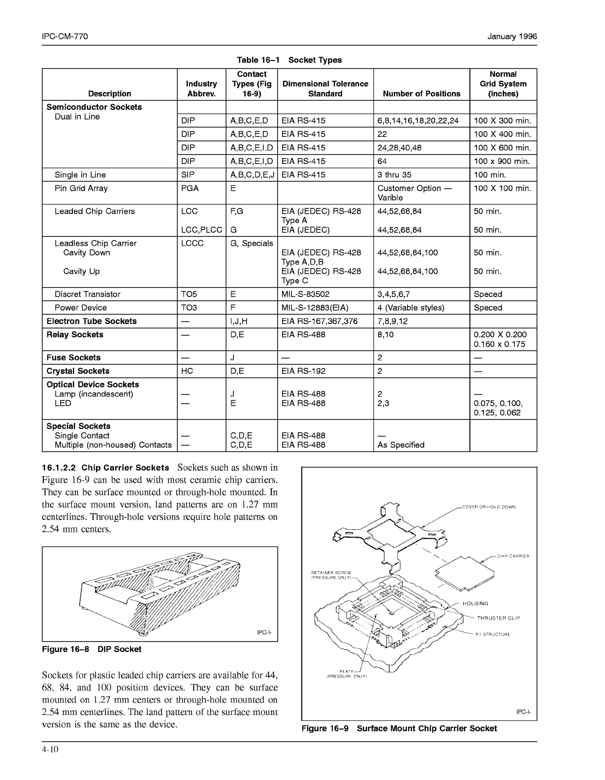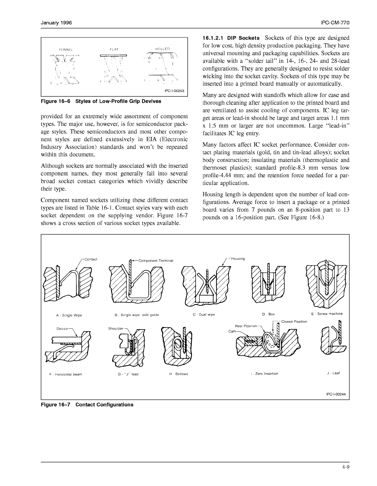 Januaw 1996 IPC-CM-770 FlJNNEL FLAT HOLLED IPC-1-00243 Figure 16-6 Styles of Low-Profile Grip Devives provided for an extremely wide assortment of component types. The major use, however, is for semiconductor pack- age s…