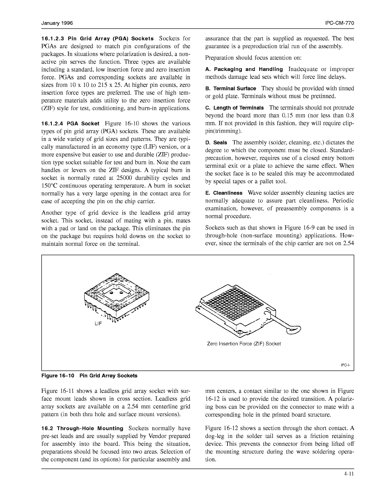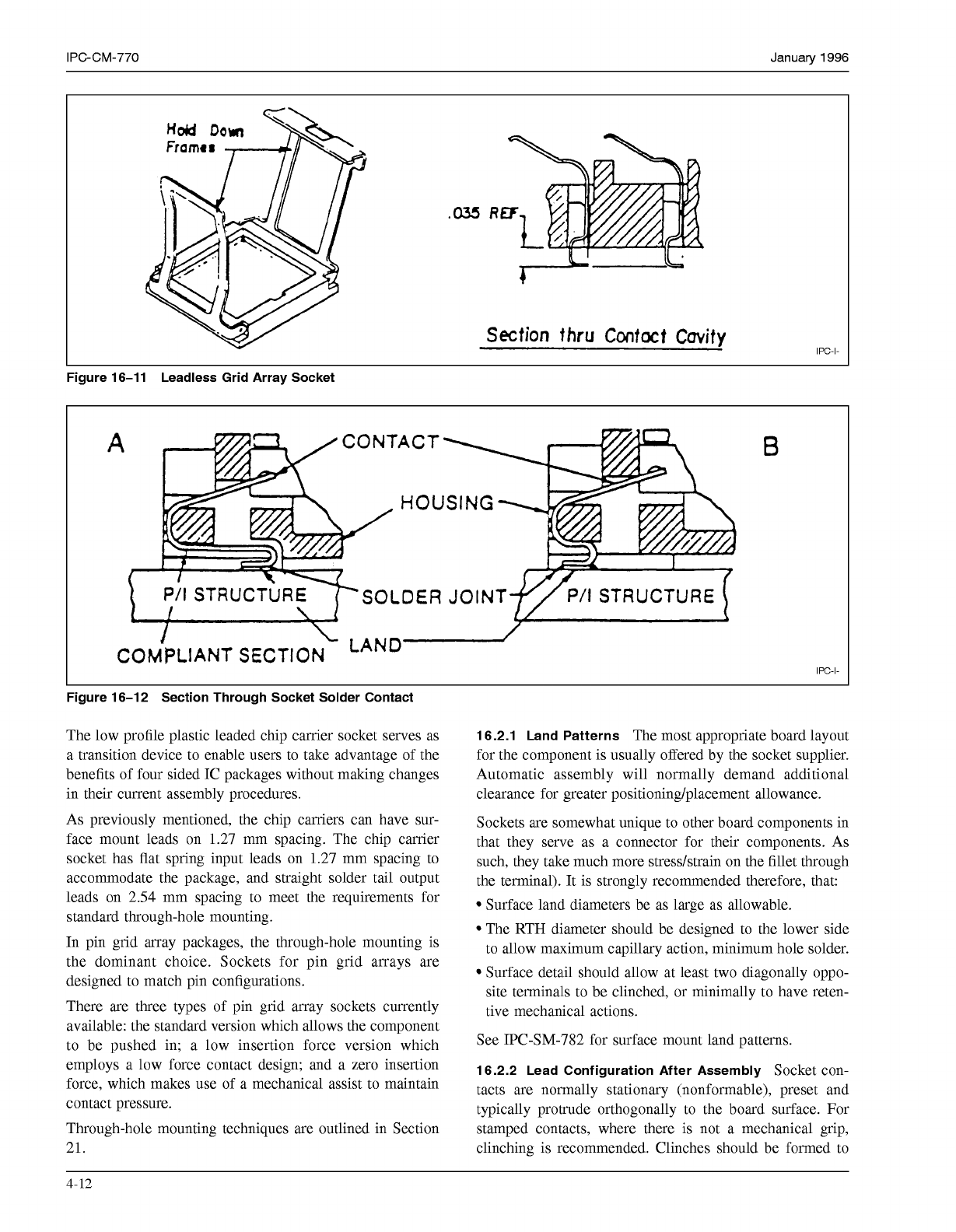 IPC-CM-770 Januaty 1996 .a35 Section fhru Contact Cuvitv IPC-I- Figure 16-11 Leadless Grid Array Socket A r 'ACT- HOUS PA STRUCTURE ?SOLDER J \ ING OIN T P/I STRUCTURE COMPLIANT SECTION L LAND B IPC-I- Figure 16-1 2…