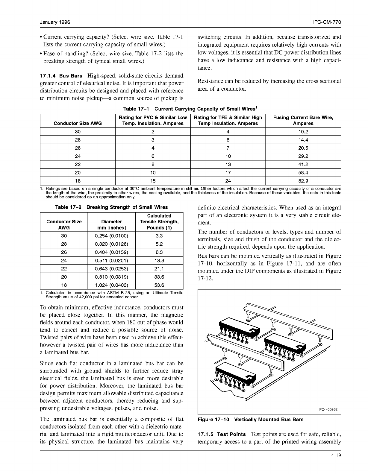January 1996 IPC-CM-770 Current carrying capacity? (Select wire size. Table 17-1 switching circuits. In addition, because transistorized and lists the current carrying capacity of small wires.) integrated equipment requi…