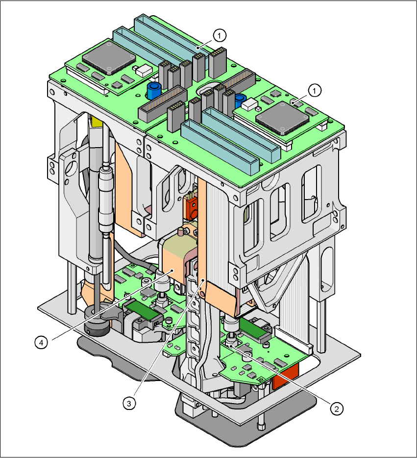 3 技術資料 SIPLACE HF 系列使用 手冊 3.6 取置頭 軟體版本 SR.505.xx 05/2004 中文版 108 3.6.4 高精密 IC 取置用 SIPLACE 雙取置頭 (TwinHead) 3 圖 3.6 - 9 高精密 IC 取置用雙取置頭 (TwinH ead) 3 (1) 拾取及置放模組-雙取置頭 (TwinHead) 包含有 2 個拾取及置放模組 (2) DP 軸 (3) Z 軸驅動裝置 (4) Z 軸的步…