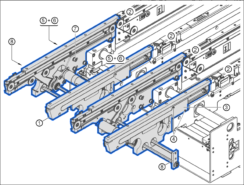 4 組立與啟用 SIPLACE HF 系列使用手冊 4.5 取置機的組立 軟體版本 SR.505.xx 05/2004 中文版 186 4.5.10 裝設輸出輸送帶 4.5.10.1 工具 - 內六角扳手,DIN 911,組 - Phillip s 螺絲起子,尺寸 1 4.5.10.2 機組件 4 圖 4.5 - 13 輸出輸送帶-雙 輸送帶 4 (1) 輸出輸送帶,面 板 (2) 處理輸送帶 2,面板 (3) 纜線蓋板,2 0 x 2…