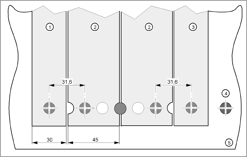 圖 5.4 - 2 在元件送料器平台㆖插入 30 或 45 mm 寬的送料器