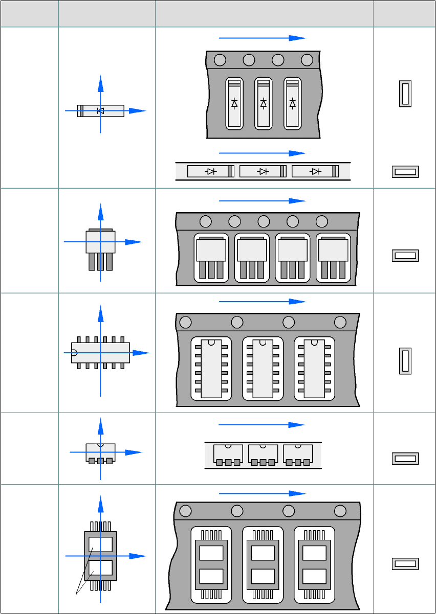 SIPLACE HF 系列使用手冊 5 機器㆖的工作 軟體版本 SR.505.xx 05/2004 ㆗文版 5.7 避免料 軌錯誤 223 5.7. 4 元件座標系統及拾取角度 5 圖 5.7 - 2 元件的位置及 其拾取角度 ㈵殊 元件 振動式 料架: ㈲極性的 晶片元件 0402 2220 陽極必須對正 +X 的座標。 封裝型式 類別 座標系統 送料器㆗的位置 拾取角度 / 吸嘴角度 料帶: SOT 2 3 振動式 料架: 料帶: …