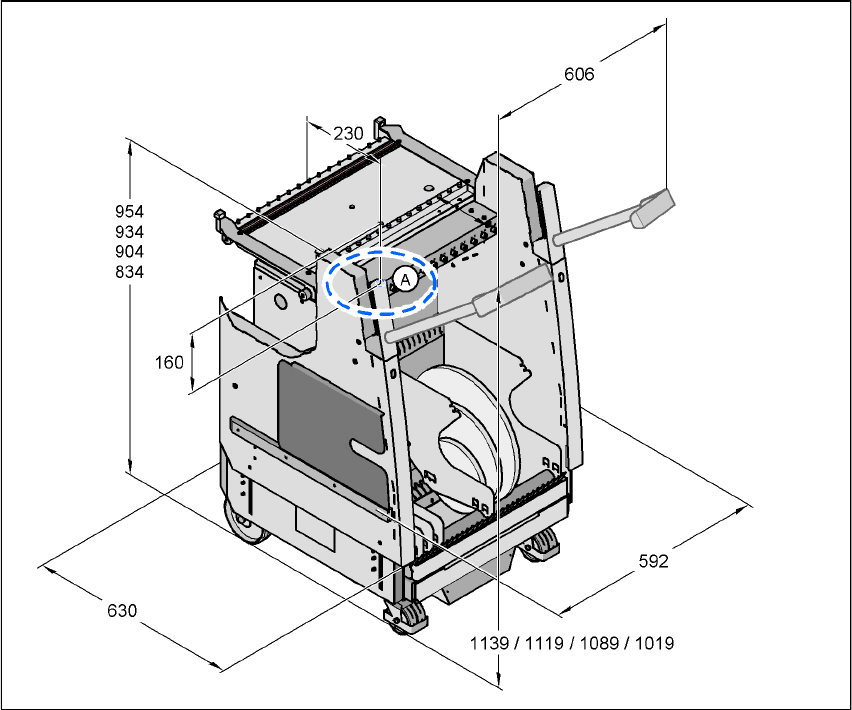 - 料站台車設定為 950 mm 的 PCB 輸送高度。