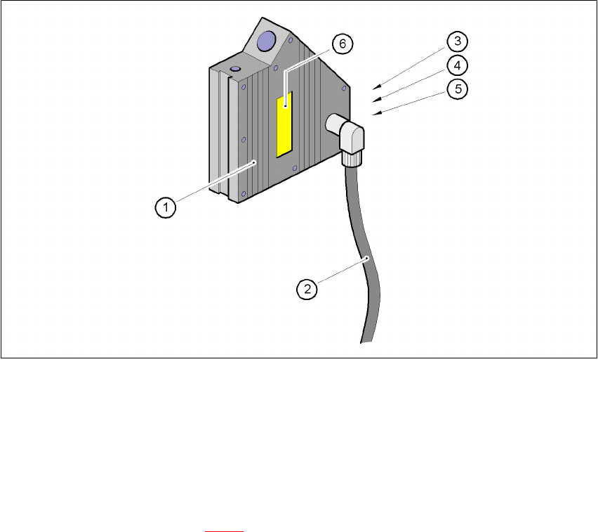 SIPLACE HF 系列使用手冊 7 工作站擴充 軟體版本 SR.505.xx 05/2004 ㆗文版 7. 11 共平面檢測模組 333 圖 7. 11 - 5 共平面檢測模組 ( 1 ) 雷射模組 (2) 連接纜線 (3) 紅色 LED :超出範圍 (4) 紅色 LED :標的物不 良 (5) 綠色 LED :雷射開啟 (6) ' 雷射等級 3B ' 貼紙,參閱圖 7. 11 - 2 7 7 7 7