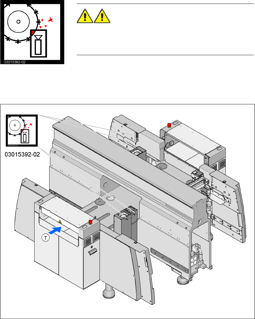 2 操作安全須知 SIPLACE HF 系 列使用手冊 2.2 警告標籤 軟體版本 SR.505.xx 05/2004 中文版 44 2.2.10 PCB 輸送帶上的 " 雷射等級 2" 警告標籤 W208 2 PCB 輸送 帶上的 " 雷射等級 2 " 警 告標籤 W208 , 零件號碼 : 03009347-01 ( 每一取置系統上 的數量 : 4) 2 2 2 圖 2.2 - 14 PCB …