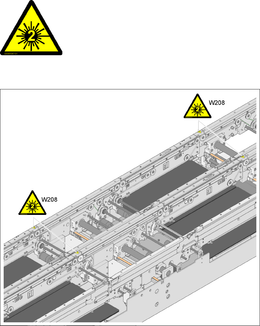 2.2.10 PCB 輸送帶上的 " 雷射等級 2" 警告標籤 W208