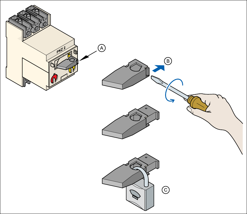 如果機器無法上鎖 ( 這是必然的 )。因為能量隔離裝置容納不下鎖具。在這種情況下,能量