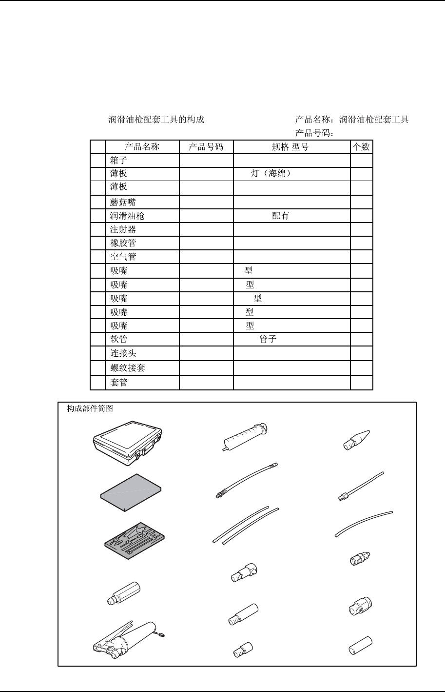 本公司销售可以使用在所有型号机器上的润滑油枪配套工具。这一套配套工具,除了泵以外