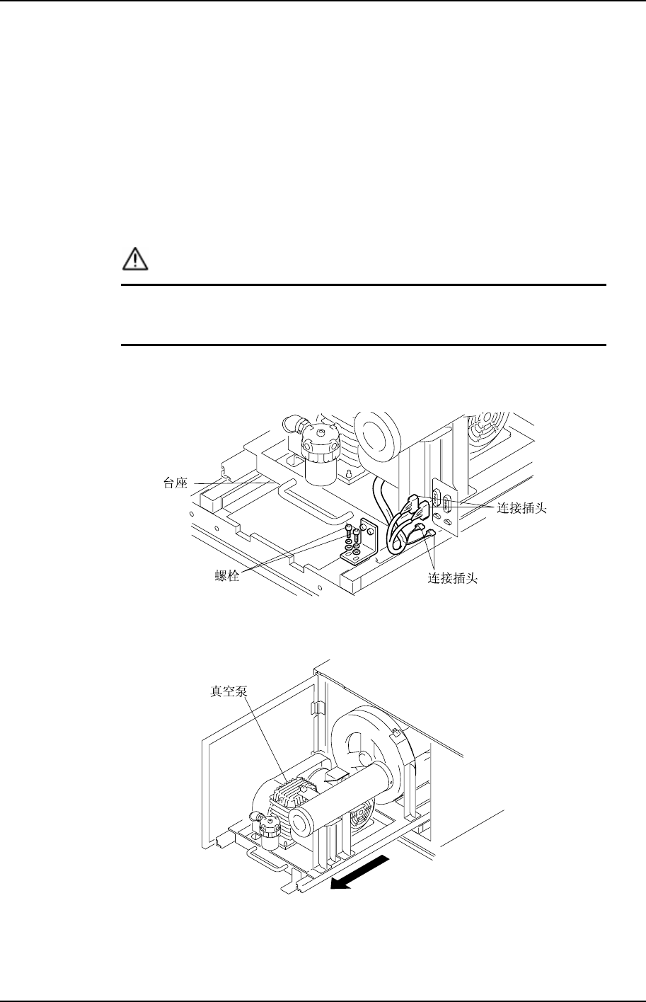 真空泵运转后会产生高温,请等真空泵充分冷却后再进行作业。
