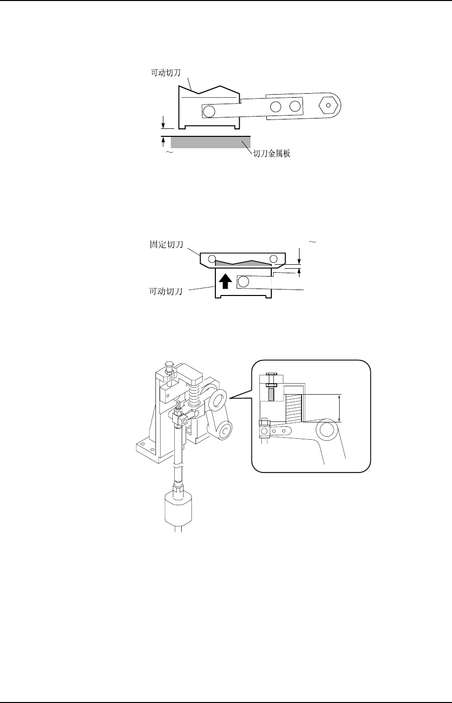 3. 把可动切刀的下方与切刀金属板下方的距离调至0~0.5mm。