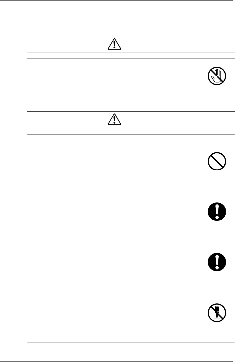 具体的警告内容表示在标记内部。(左图的示例表示禁止接触。)