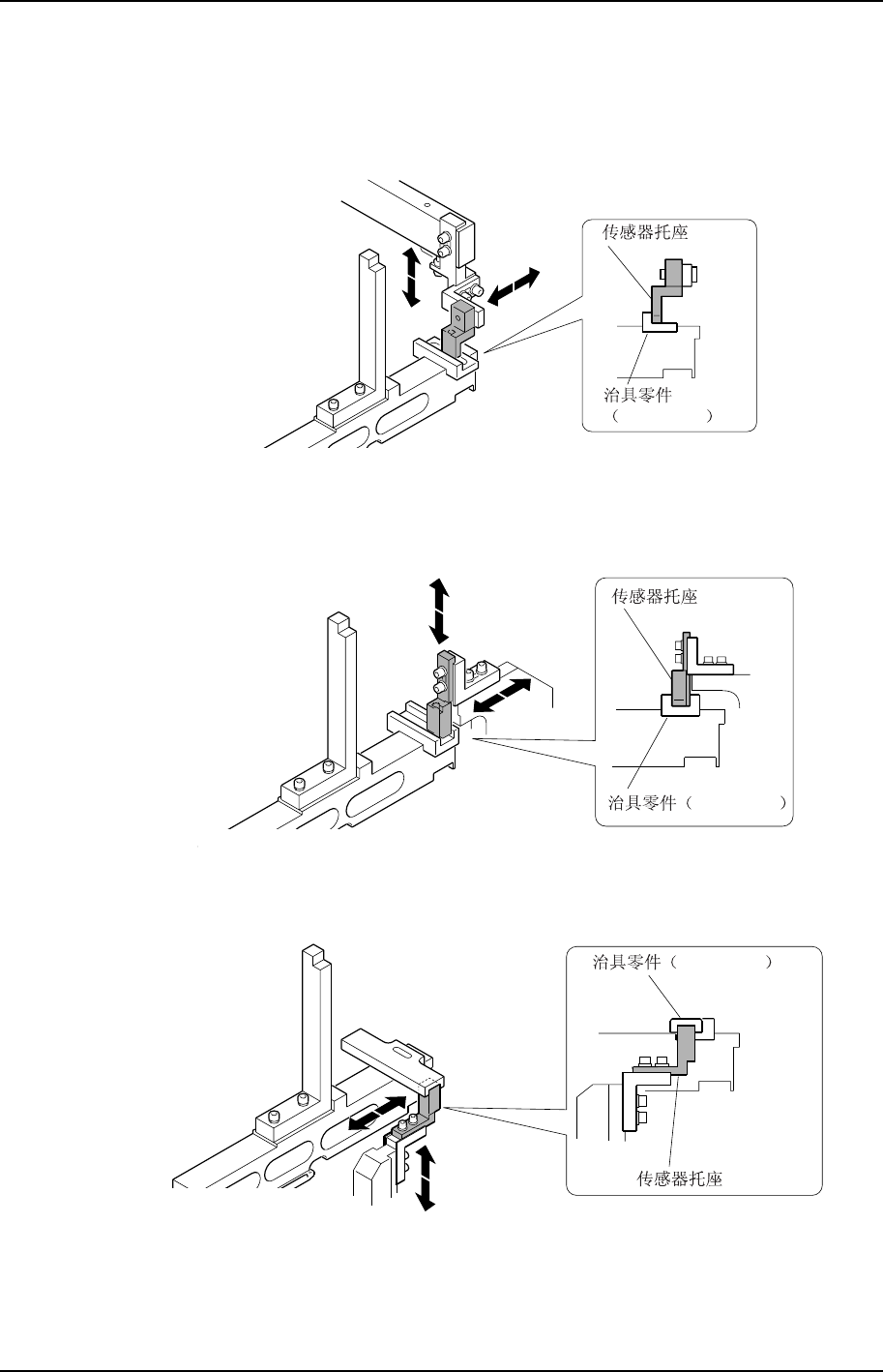 a) 传感器托座的位置调整是否正确。