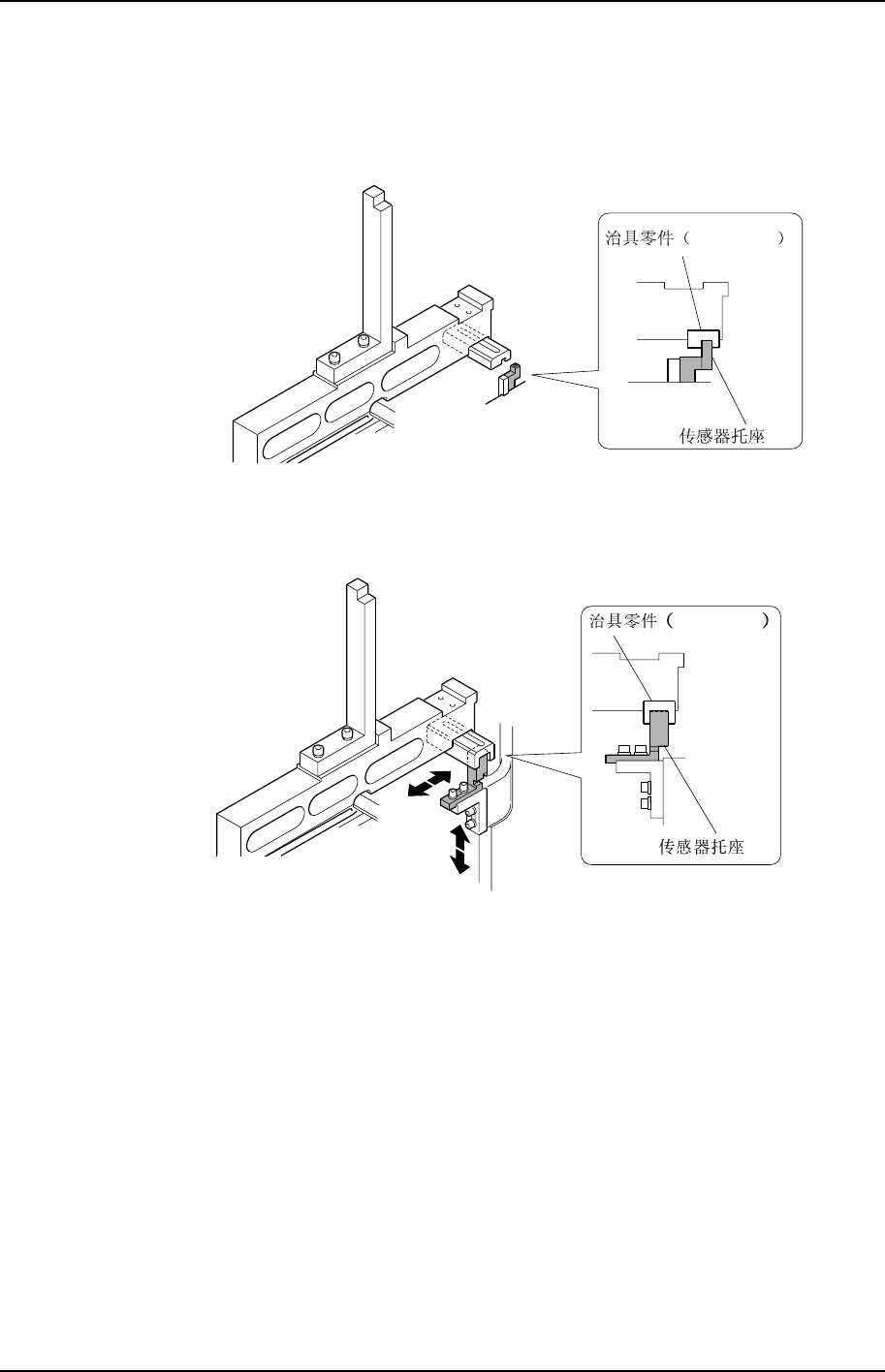 a) 传感器托座的位置调整是否正确。