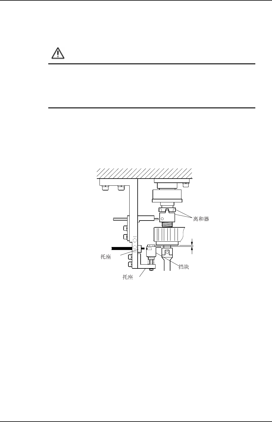 4. 在离合器正常啮合的状态下,调整托座 A 的安装高度,使下图的间隙 C 为 0.2mm。