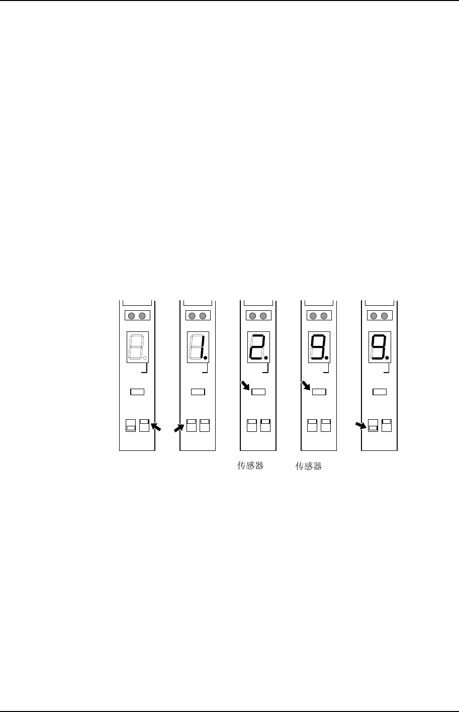 6. 确认放大器在设定后的数字显示:传感器 ON 时为 0~1,此外为 8~9。
